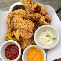 ayam lembut takdak tulang,perap bukan biasa,rapuih pulak tu.ada fries dan 3 jenis sos